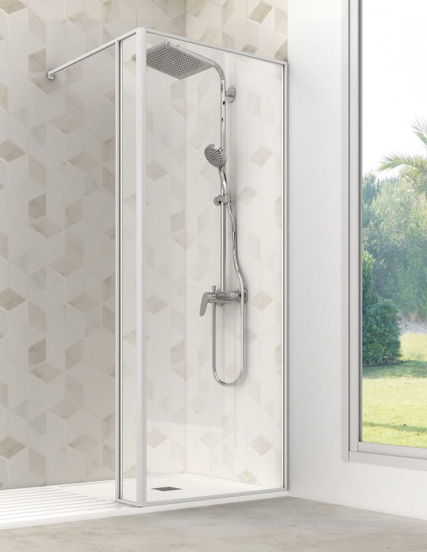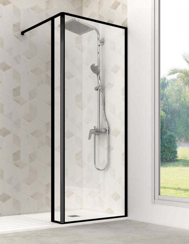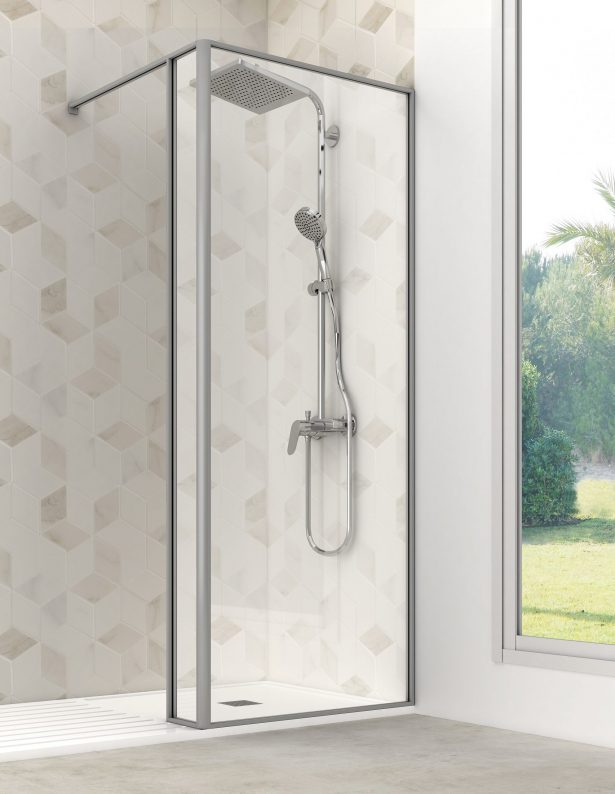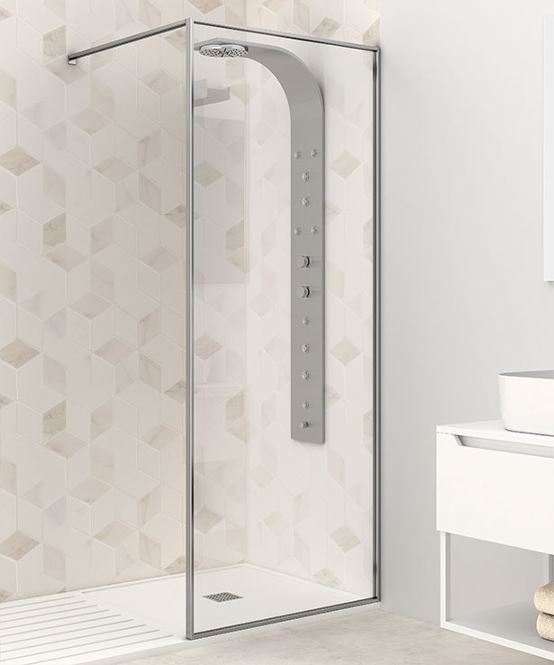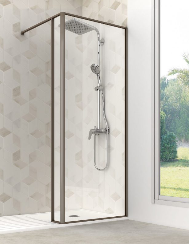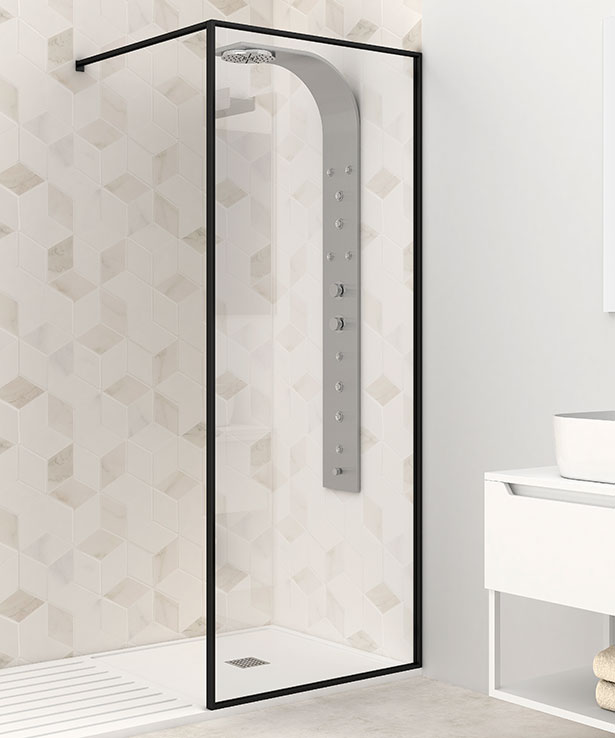 Sistema de cerramientos fijos de ducha con vidrio de 6 mm templados recercados perimetralmente. Con un perfil exclusivo de líneas puras, esto nos permite delimitar visualmente el espacio de ducha. Siempre realizados a medida con la posibilidad de lacar los perfiles en cualquier color de la carta ral, acabados oro, oro Viejo, cobre, inox, níquel, níquel negro, latón. Opción de aplicar tratamiento antical.